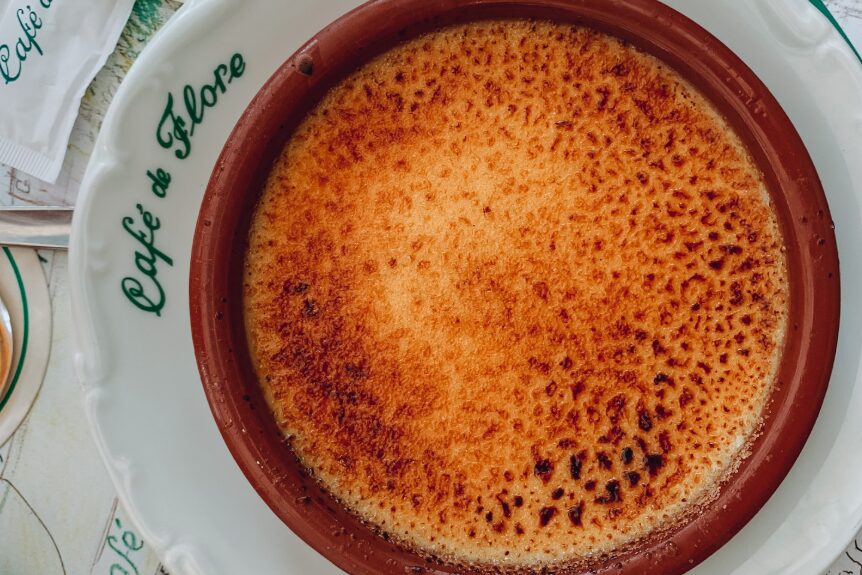 濃厚なカスタードクリームの上に、砂糖を焦がして作る香ばしいカラメル層をのせた、フランス定番のデザートです。スプーンを入れると「パリッ」カラメルが心地よく割れ、なめらかなクリームとの対比が楽しめます。甘すぎず、上品でまろやかな味わいです。