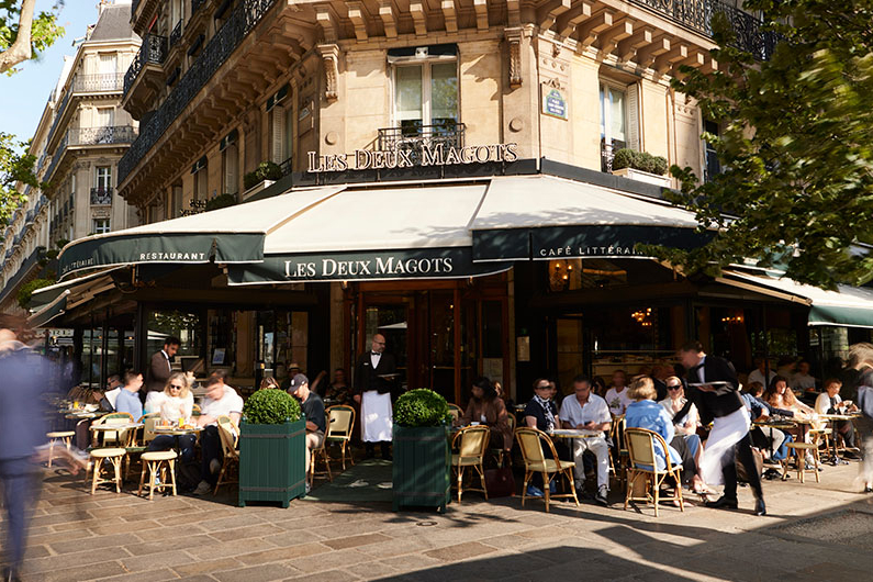 中でも、サン=ジェルマン=デ=プレにあるドゥ・マゴ(Les Deux Magots)は、長い歴史と文学・芸術との深い結びつきで知られる名店です。