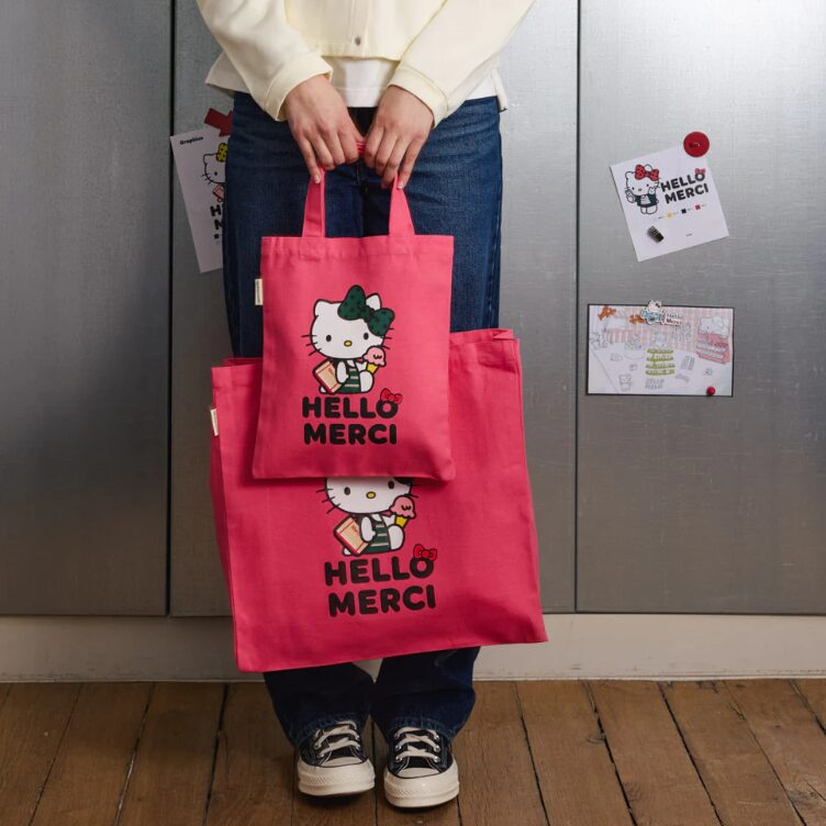 Hello Kittyとのコラボで限定アイテムが登場することも。ポップで可愛らしい中にもメルシーらしいセンスが感じられ「パリらしいおしゃれ」と「遊び心」を両立したお土産としてとても人気があります。