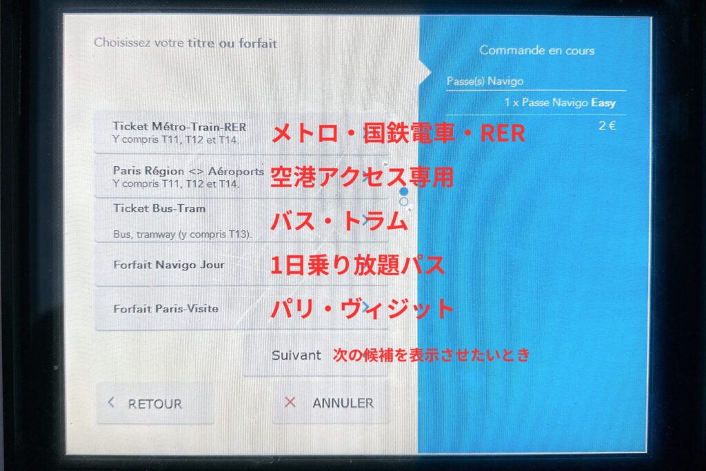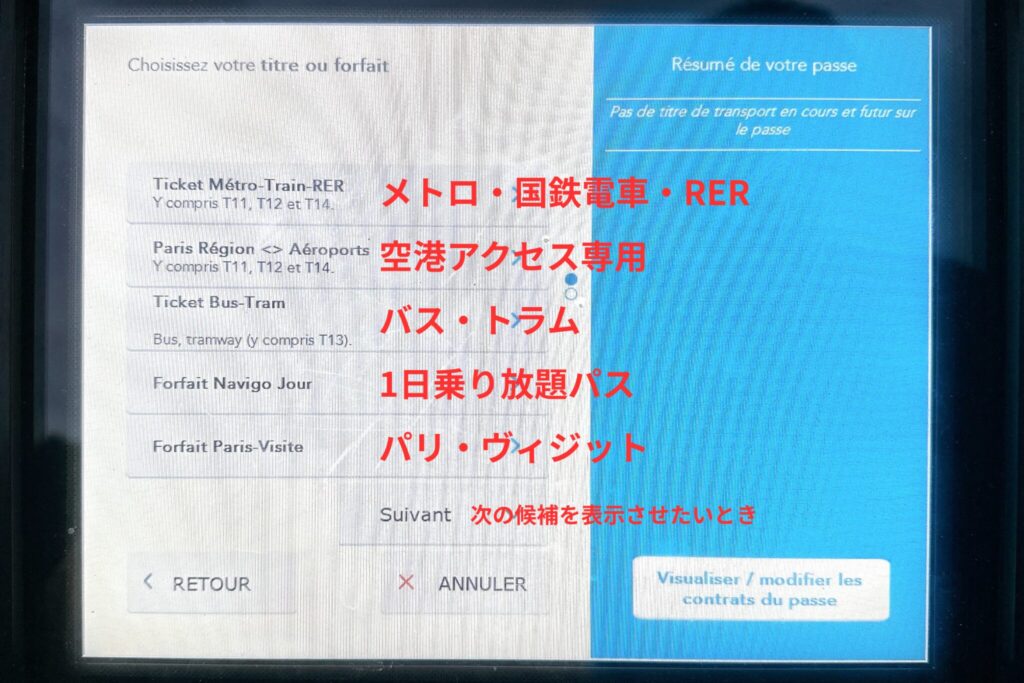 対象 パリ市内のメトロ、RER、トランジリアン(郊外近距離列車)、ケーブルカー