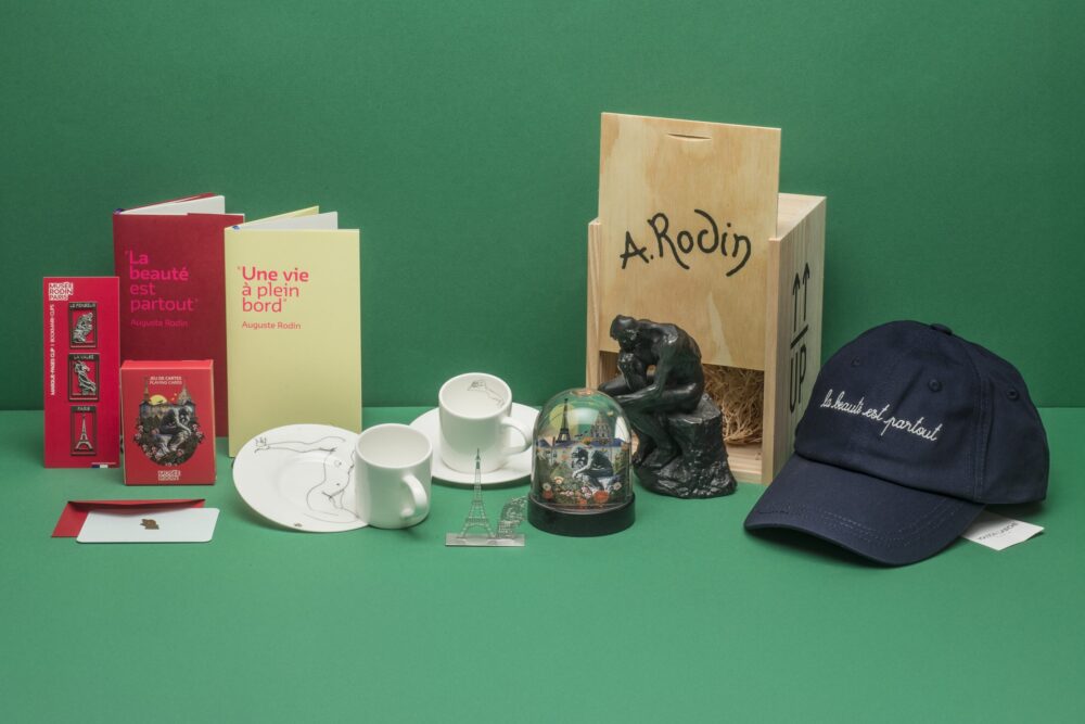 忘れずに立ち寄りたいのが、入り口近くにある公式ミュージアムショップ「ブティック・デュ・ミュゼ・ロダン(Boutique du musée Rodin)」です。ロダン作品をモチーフにした、さまざまなお土産が揃っています。