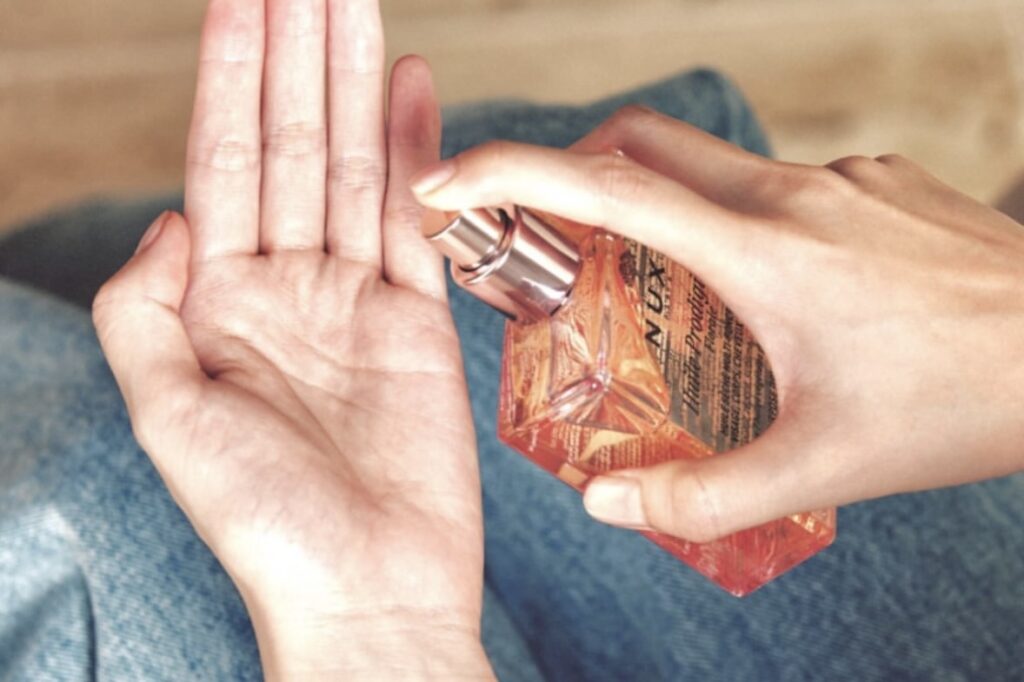 髪にはオイルの後に軽く無香料のヘアミストを吹きかけると、香りが強く残らず柔らかく漂う程度に抑えられます。