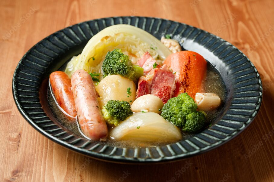 牛肉や鶏肉、根菜類を長時間煮込んだフランスの家庭料理。具材から出る旨味が染みたスープは、体が冷えたときに最高のごちそうです。