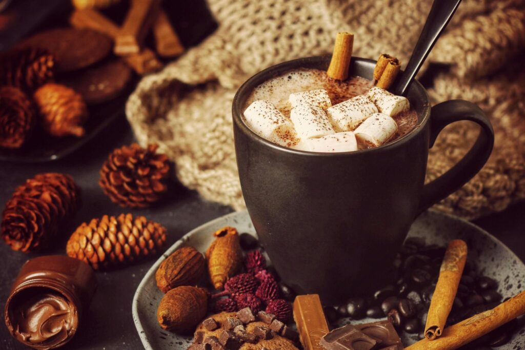 濃厚なホットチョコレートは、冬の定番ドリンク。甘さ控えめや濃厚タイプなど店ごとに個性があり、ふわふわの泡や生クリームをトッピングしたものも人気です。
